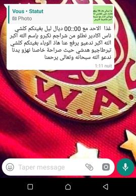 ووفق ما تابعته “أكادير بريس”، فقد توصل عدد من المواطنين بمدينة أكادير ونواحيها، برسالة نصية عبر تتطبيق التراسل الفوري “واتساب”، من أجل المشاركة في مبادرة “مواجهة فيروس كورونا القاتل بواسطة الدعاء والإبتهال الديني والتضرع إلى الله”، من خلال “التكبير باسم الله، حتى يرفع هذا البلاء الذي أصاب البلاد والعباد”.